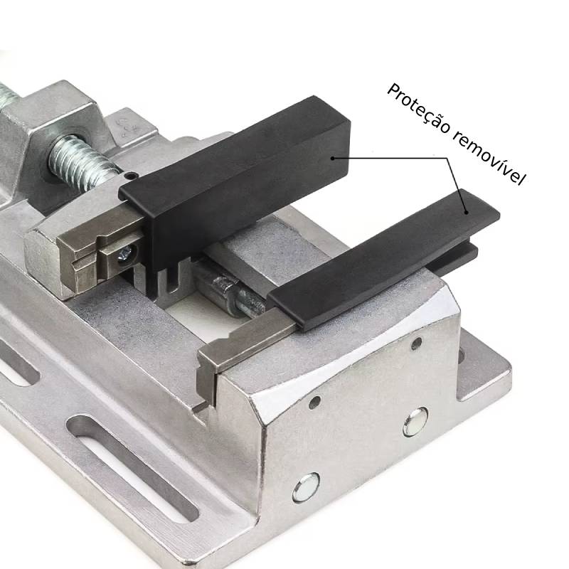 - Mordente com proteção de borracha, ideal para não danificar a peça;
