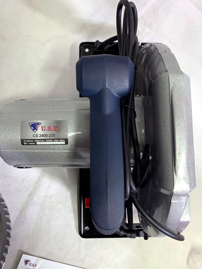 A Serra Circular para madeira 9POL 2400 watts USK possui alto rendimento, com o motor mais potente da sua classe e é ideal para trabalhos profissionais em setores de construção, manutenção, marcenaria entre outros. Suporta discos de 9POL. (230mm).