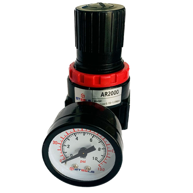 O Regulador de Ar, mantém um preciso e rápido fluxo de ar em sua pistola ou compressor.