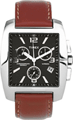 Relógio Masculino Quadrado Crono, Preto com pulseira de couro Marron